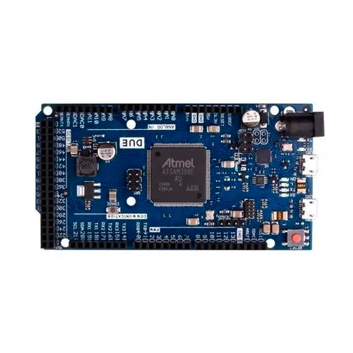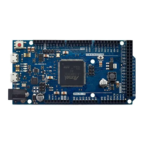 Arduino DUE (oficial). ARM Cortex-M3 a 84 MHz, 512 KB flash, 96 KB SRAM. 54 GPIO, 12 salidas DAC, 12 entradas analógicas. Ideal para audio, control industrial o proyectos avanzados.