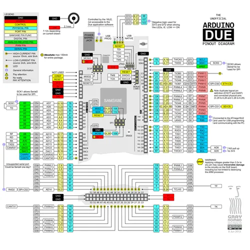 - Nunca alimentes con 5V en los pines I/O — el DUE opera a 3.3V y es sensible a sobretensión.
