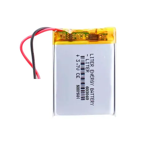Batería LiPo 603040, 3.7 V, 800 mAh. Delgada y ligera. Ideal para wearables, sensores IoT, drones mini o dispositivos portátiles. Incluye cables JST o soldables.