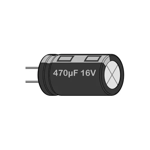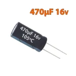 Capacitor electrolítico 470 µF, 16 V, axial. Ideal para filtrado en fuentes de 5V/12V, estabilización y circuitos de retardo. Polarizado — ¡verifica polaridad!