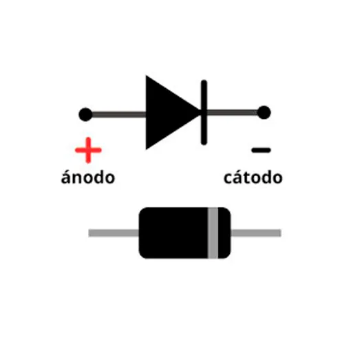 - La banda blanca indica el cátodo (salida de corriente).