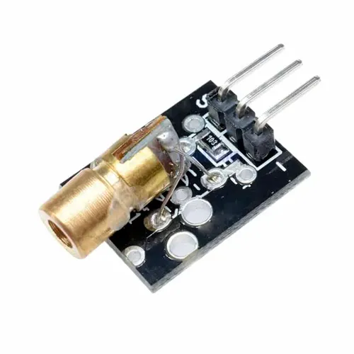 Módulo láser KY-088 (emisor de haz rojo 650 nm). Ideal para Arduino/ESP32. Se usa con fotodetector para detectar interrupción de haz. Perfecto para puertas, contadores o proyectos ópticos.