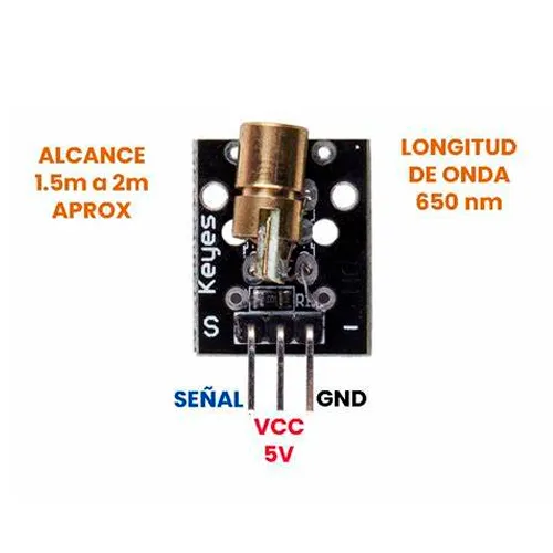 - 🔌 Pines: VCC, GND, SIG (salida digital — activa el láser cuando HIGH)