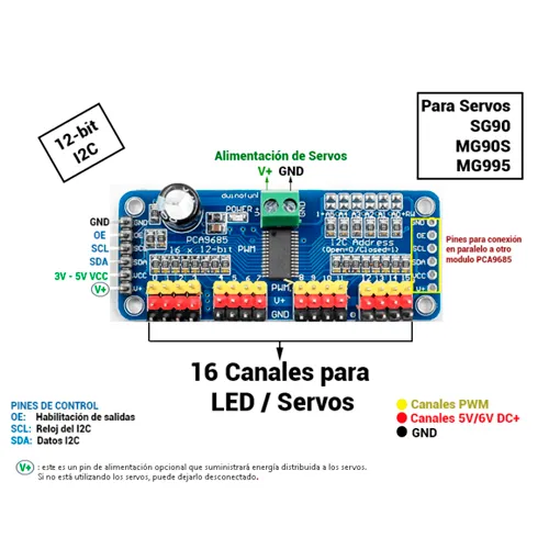 - 📏 Canales: 16 salidas PWM (todas independientes)