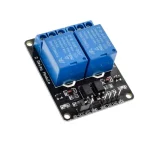 Módulo relé de 2 canales, 5V, optoacoplado. Ideal para controlar luces, motores o dispositivos AC/DC con Arduino/ESP32. Incluye LED indicador y terminales. ¡Seguro y aislado!