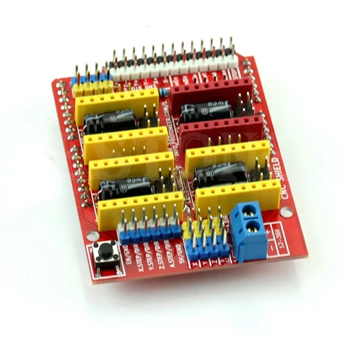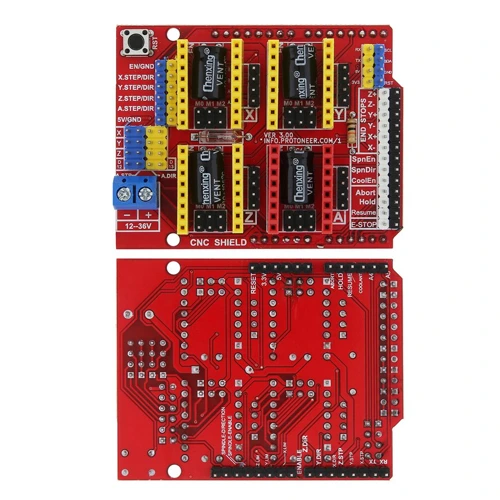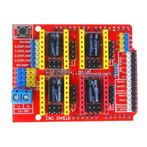 El Shield CNC V3 es una placa controladora profesional diseñada para gestionar hasta 4 motores paso a paso simultáneamente, ideal para proyectos de fabricación digital como impresoras 3D, fresadoras CNC, trazadores láser o robots cartesianos. Incorpora 4 controladores A4988 (o compatibles), cada uno con regulación de corriente vía potenciómetro, protección térmica y modo de micro-paso (1/16). Se monta directamente sobre Arduino UNO, Mega 2560 u otras placas compatibles — ¡plug & play para automatización avanzada!