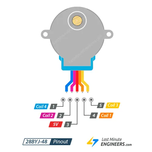 - 🔋 Corriente por bobina: ~24–30 mA (a 5 V)