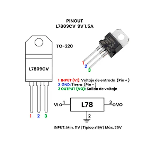 - No uses el 7809 para entradas cercanas a 9V (ej. 10V) — considera un LDO como AMS1117-9.0 si necesitas bajo dropout.