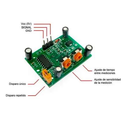 - 📈 Sensibilidad: Ajustable de ~2.5 m a 7 m (potenciómetro S)