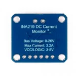 Sensor INA219 para medir voltaje, corriente y potencia en tiempo real. Interfaz I2C, rango ±3.2A, 0–26V. Ideal para Arduino/ESP32. Perfecto para baterías, cargas o proyectos de energía.